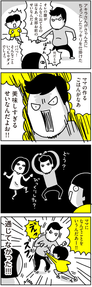 夫婦ゲンカドッキリ 2016.03.04 日常漫画 夫アキラ, 息子きゃん太・幼稚園児 ドッキリ あとがき 冗談でもこんなことしちゃいけなかったな、と今は思います。 3 コメントはこちら 同じカテゴリの記事 入園グッズ(布もの)の準備【コノビー掲載漫画】 セレモニースーツ、どうする?【コノビー掲載漫画】 我が家のサンタヒストリー その5 我が家のサンタヒストリー その4 我が家のサンタヒストリー その3 我が家のサンタヒストリー その2 我が家のサンタヒストリー その1 いつから一人で寝られる?【コノビー掲載漫画】 我が家のハロウィン【コノビー掲載漫画】 初めての授乳の思い出【コノビー掲載漫画】 坊ちゃん刈りからの卒業【コノビー掲載漫画】 胎毛筆の思い出【コノビー掲載漫画】 きゃん太(小2)との日常【コノビー掲載漫画】 ホクロを取った話 その3 ホクロを取った話 その2 ホクロを取った話 その1 ミニトマトの名前 バレンタイン2024 MUGON 粉瘤の話2(後編) 粉瘤の話2(前編) アニメ「進撃の巨人」最終回と我が家(後編) アニメ「進撃の巨人」最終回と我が家(前編) 修学旅行のお土産 だからなんだ絵日記 2023年7~8月 きゃん太と夏休みの宿題 初めてのバイトとカズヨシ【後編】 初めてのバイトとカズヨシ【前編】 クールアンドドライきゃん太 12の夜 映画「THE FIRST SLAM DUNK」観てきた がも 春休みのきゃん太 私が◯◯になっても+お知らせ(レタスクラブ) 節分2023 きゃん太からの苦言 パッキンを届けたら その2 パッキンを届けたら その1 カズヨシ・80歳 その2 カズヨシ・80歳 その1 きゃん太の謎発言とLINEスタンプの宣伝 あだ名クイズ きゃん太の成長期 2年ぶりの健康診断 ちょっ子ちゃん〜顔のケガの思い出 後編〜 ちょっ子ちゃん〜顔のケガの思い出 前編〜 きゃん太の忘れもの きゃん太という男 粉瘤の話 猫の名前 そんなんじゃない きゃん太とセミ きゃん太と若冲 きゃん太の気がかりなこと 都道府県を体で表現する遊び ケーキの代わり きゃん太と進撃の巨人 アニメ「進撃の巨人」にハマった話 「劇場版 鬼滅の刃 無限列車編」観てきた Switchで桃鉄始めました きゃん太と鬼滅の刃 キングダムにハマった家族の風景 母の靴(3) 母の靴(2) 母の靴 (1) 最近のスタイル2 最近のスタイル こわいよ こわいよ きゃん太の夢(9歳現在) 続々・気を遣うきゃん太 ケンカの仲裁 誕生日のプレゼント 毛穴の話 休校中のきゃん太 つないだ手 2020年 年始のきゃん太 クリスマスのお菓子 オオサンショウウオ(の ぬいぐるみ)が来た 予防接種にて〜2019〜 気になる帽子 愛のことば きゃん太のアダ名センス 父の愛4 ママの代わりに バイトの思い出 ゲーム中のきゃん太 カズヨシ・メソッド(後編) カズヨシ・メソッド(前編)とウーマンエキサイト挿絵 母の日のこと 2019 GWの思い出 きゃん太と新元号+ウーマンエキサイト記事挿絵 きゃん太と漢字 ボヘミアンラプソディとバナナフィッシュ きゃん太の不安 初詣ときゃん太 続・気を遣うきゃん太 気を遣うきゃん太 ちょっ子ちゃん〜氷砂糖の思い出 後編〜 ちょっ子ちゃん〜氷砂糖の思い出 前編〜 きゃん太のボキャブラリー きゃん太、迷子になる② きゃん太、迷子になる① きゃん太へのごほうび アキラさんの口笛 ◯◯◯◯の呼び方 恐竜の夏 きゃん太の言い回し きゃん太のジャスティス 父の愛3 アヒル口 きゃん太の反抗期 小僧ずラブ おなかがいたい きゃん太との再会 オトナなきゃん太 ママと結婚できなくても きゃん太とインフルエンザ 雪の日のきゃん太 ちょっ子ちゃん〜カズヨシとクリスマス後編〜 ちょっ子ちゃん 〜カズヨシとクリスマス前編〜 サンタへの感謝 ウォーキングデッド脳 きゃん太と相撲 笑顔を見せて アキラさんと腹筋ベルト(+ウォーキングデッドの話) if 〜もしも〜(+ウパ男の話) きゃん太の変化 きゃん太と運動会のお弁当 きゃん太の落ち着く香り ふたりの暗号 きゃん太のツッコミ きゃん太とサプライズ おっちゃんの似顔絵 あのころは 化石発掘体験 きゃん太のお泊まり おしりペンペン 新しい服 虫採りの流儀 僕はやってない どう思ってるの きゃん太の夢 父の愛2 二人の秘密 きゃん太のあっちむいてホイ ゆうすけくん 父の愛 きゃん太のごっこ遊び さいごの日 おやすみのチュー きゃん太と自転車 あたらしい言葉 PPAP きゃん太ver. パパの呼び方 豆まきの意義 予防接種にて ちょっ子さんの失敗 人間嫌い 言ってほしい ちょっ子さんちのクリスマス② ちょっ子さんちのクリスマス① きゃん太とあこがれの人② きゃん太とあこがれの人 言いたいこと 立派な◯◯◯ 女子ときゃん太とブログ一周年 きゃん太の芸の道 ちょっ子さんの秘密 ママの料理 きゃん太・その愛 〜2016 秋〜 まりやちゃんの想い きゃん太とロボザウルス トイレに行きたい きゃん太の学び 断乳した時の話 ママのおなかは 愛と裏切りのきゃん太 きゃん太と買い物 恐怖の夜 夏のアキラさん 父の肖像 きゃん太の新技 言うと思った 噛まずに言えるかな アキラさんのダイエット 大人の階段登るきゃん太 きゃん太とお絵描き きゃ