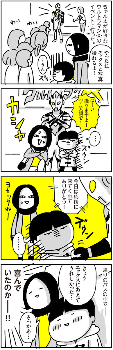 当時「ウルトラマンX」にドハマりしていたきゃん太を初めてヒーローショーに連れて行った時のことです…。