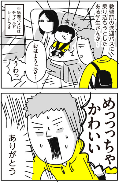 きゃん太を連れて送迎バスに乗ったり教習所内を歩いてたりすると