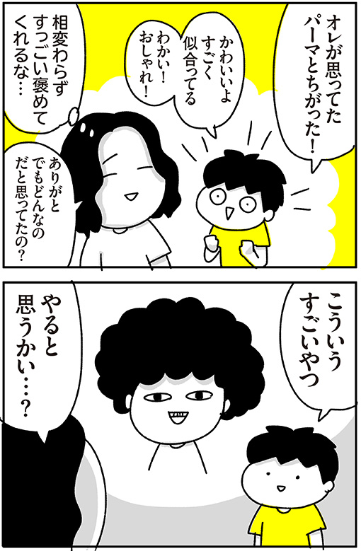 パーマあててきた私を見たきゃん太の反応はこんな感じでした。