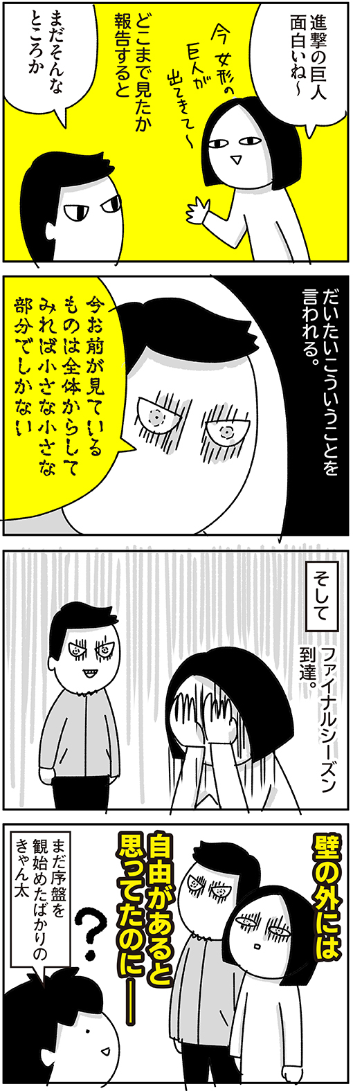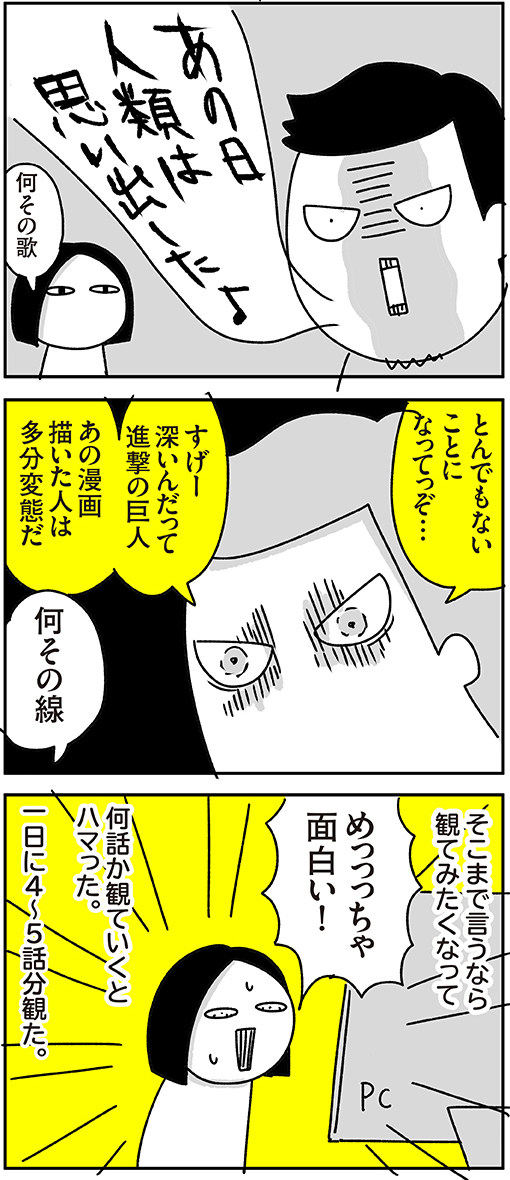 アニメの「進撃の巨人」を観始めたそうなのですが