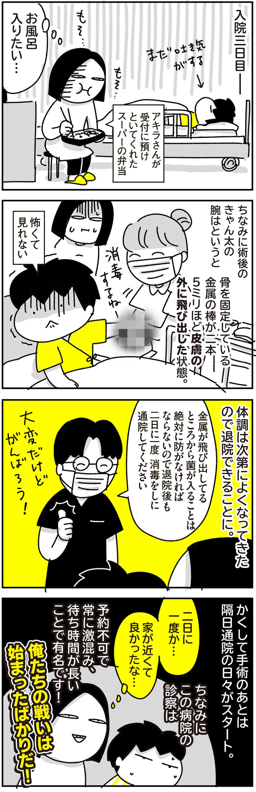 二日に一度、息子が学校から帰ったら病院に連れて行き消毒・診察を受けました。
