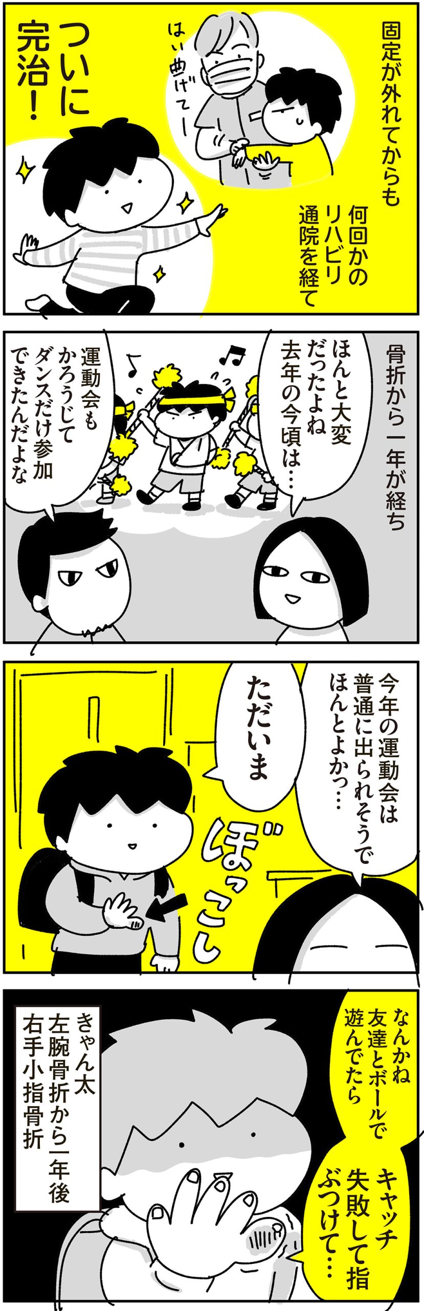 3週間程度の固定でほとんど治り、この年の運動会には普通に参加することができましたとさ。