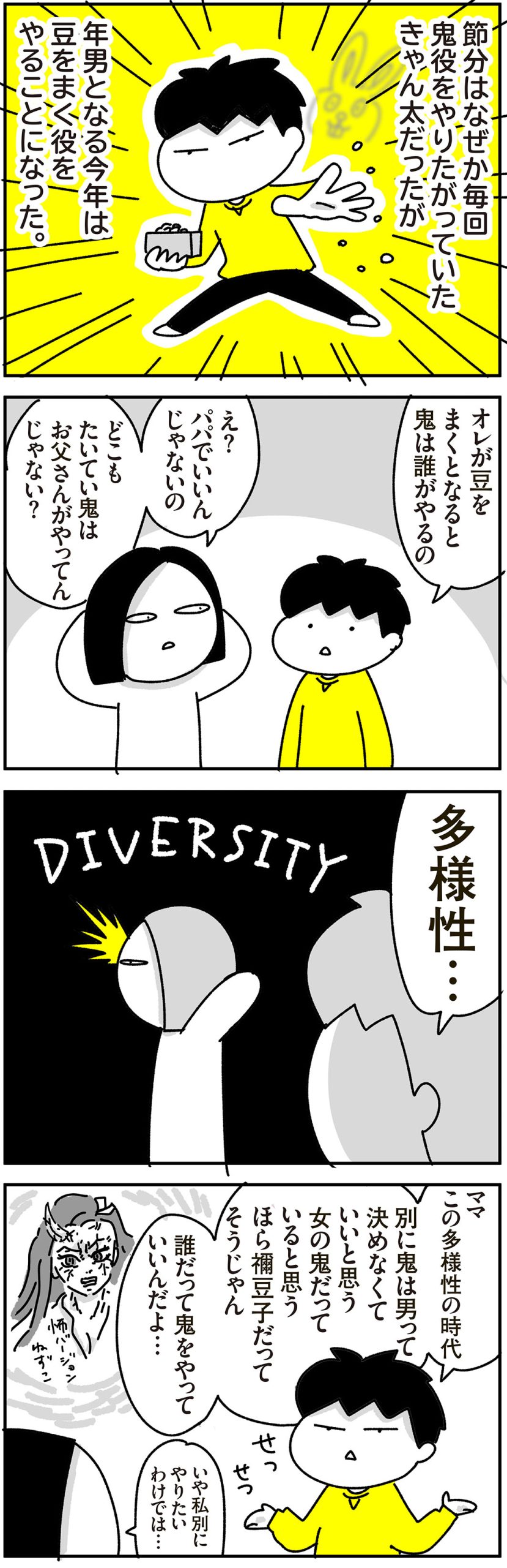 節分では、なぜか鬼をやりたがりがちなきゃん太。