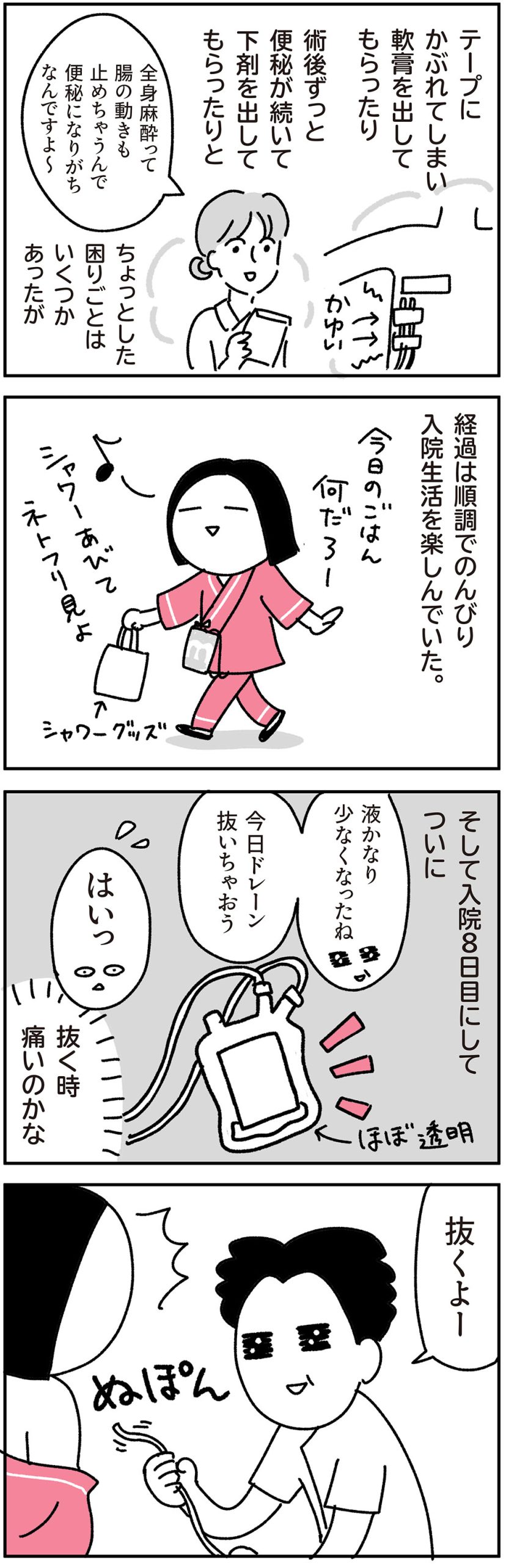 ドレーンはぬぽんと抜けました。これで身軽になったぞ!と思ったら…